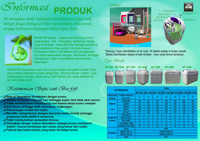 jadi jangan salah pilih,gunakan septic tank BIO type BF BIOGIFT ini untuk limbah closed anda.